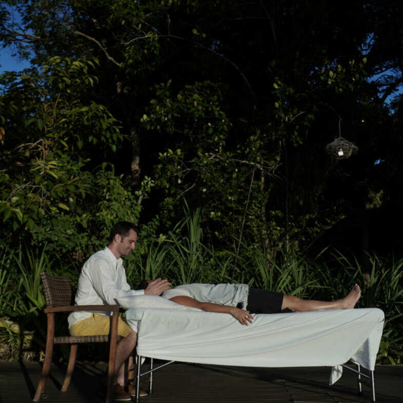 El toque curativo de una persona tocando a otra